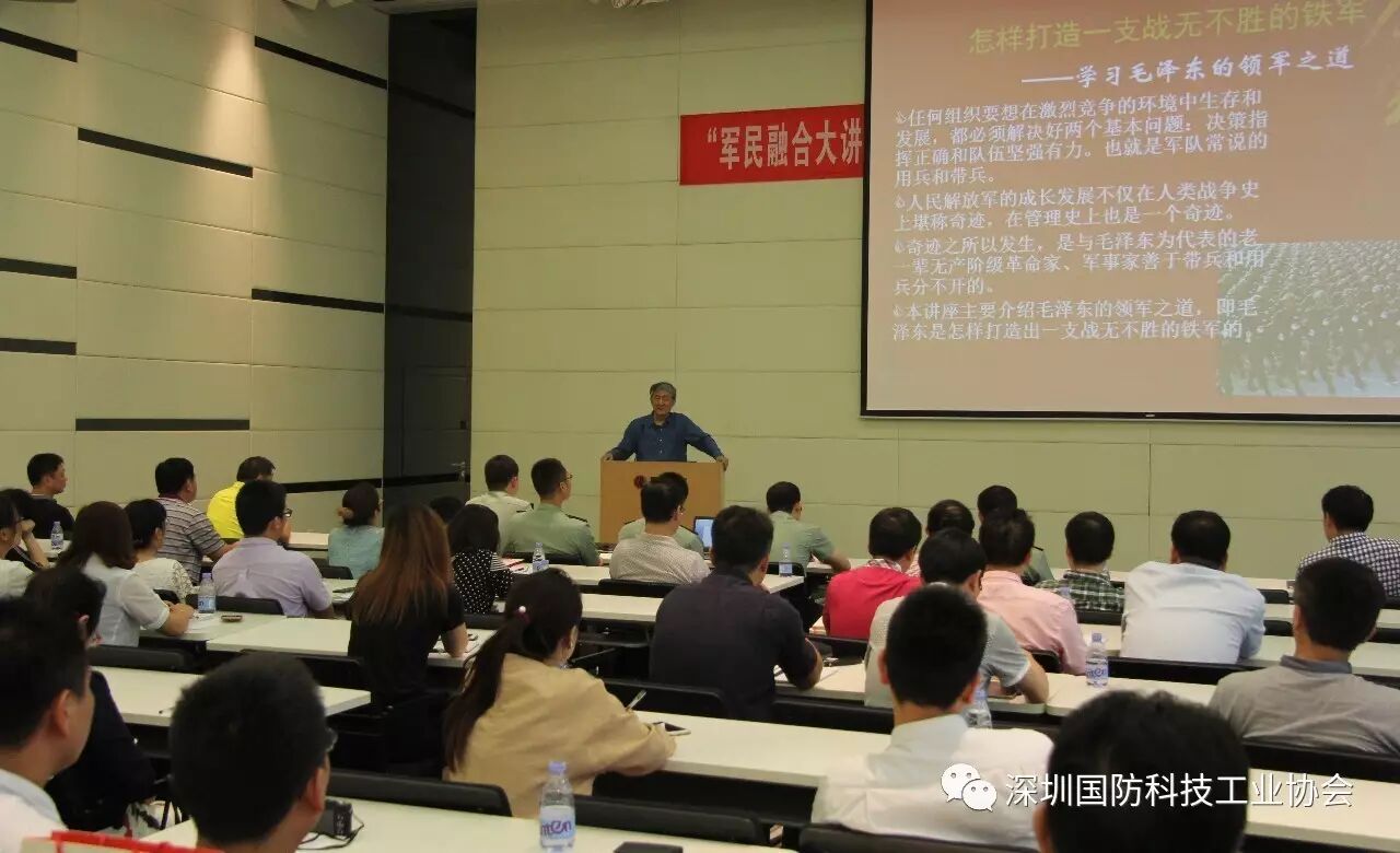 5月10日下午,开国上将李克农之孙李凯城大校走进由深圳国防科技工业协会创办的“军民融合大讲堂”,以中国工农红军的发展与壮大为例谈特区企业的管理与用人,鲜活的案例与新颖的思想受到与会者热情追捧。